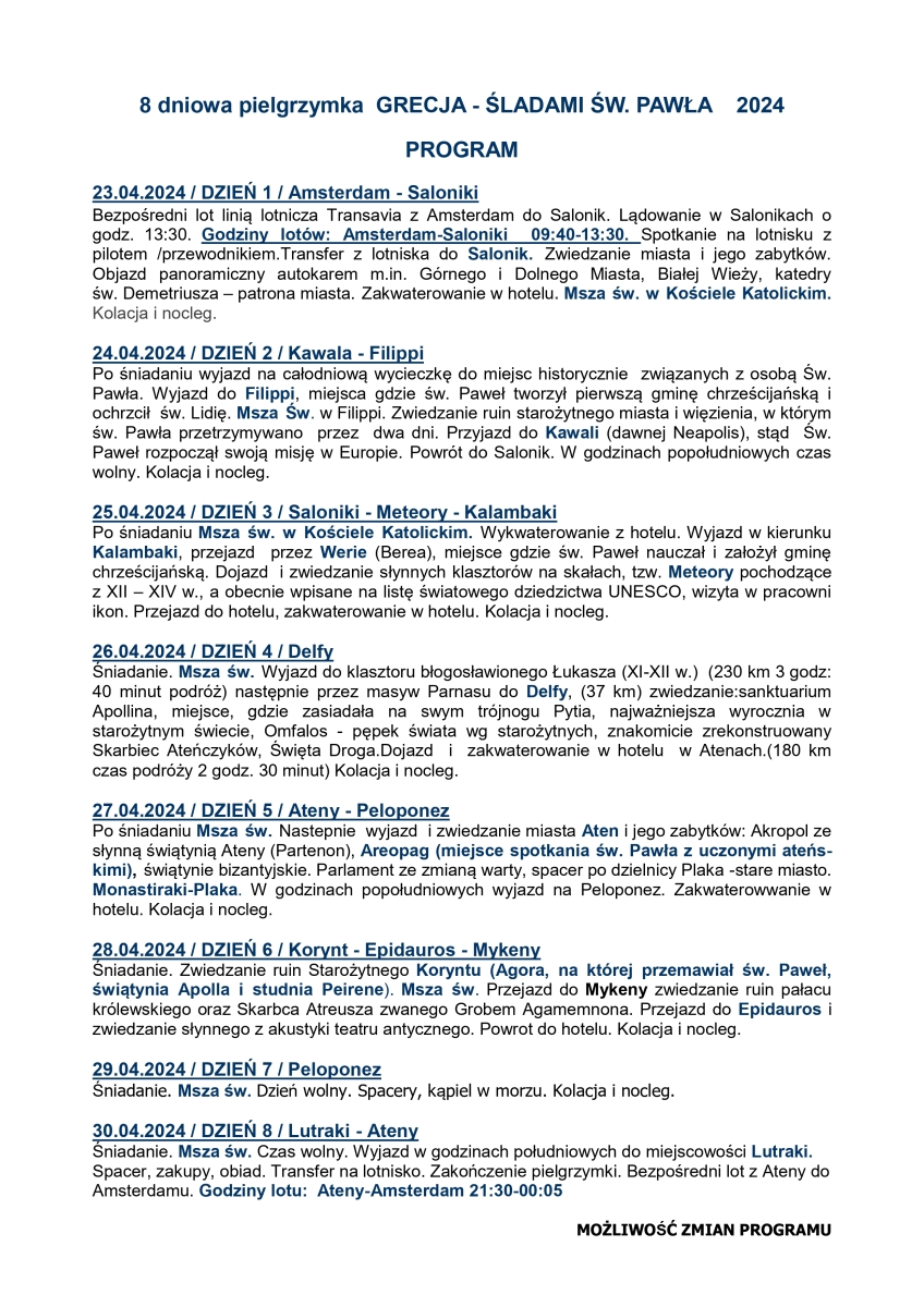 8 dniowa pielgrzymka GRECJA – ŚLADAMI ŚW. PAWŁA 2024